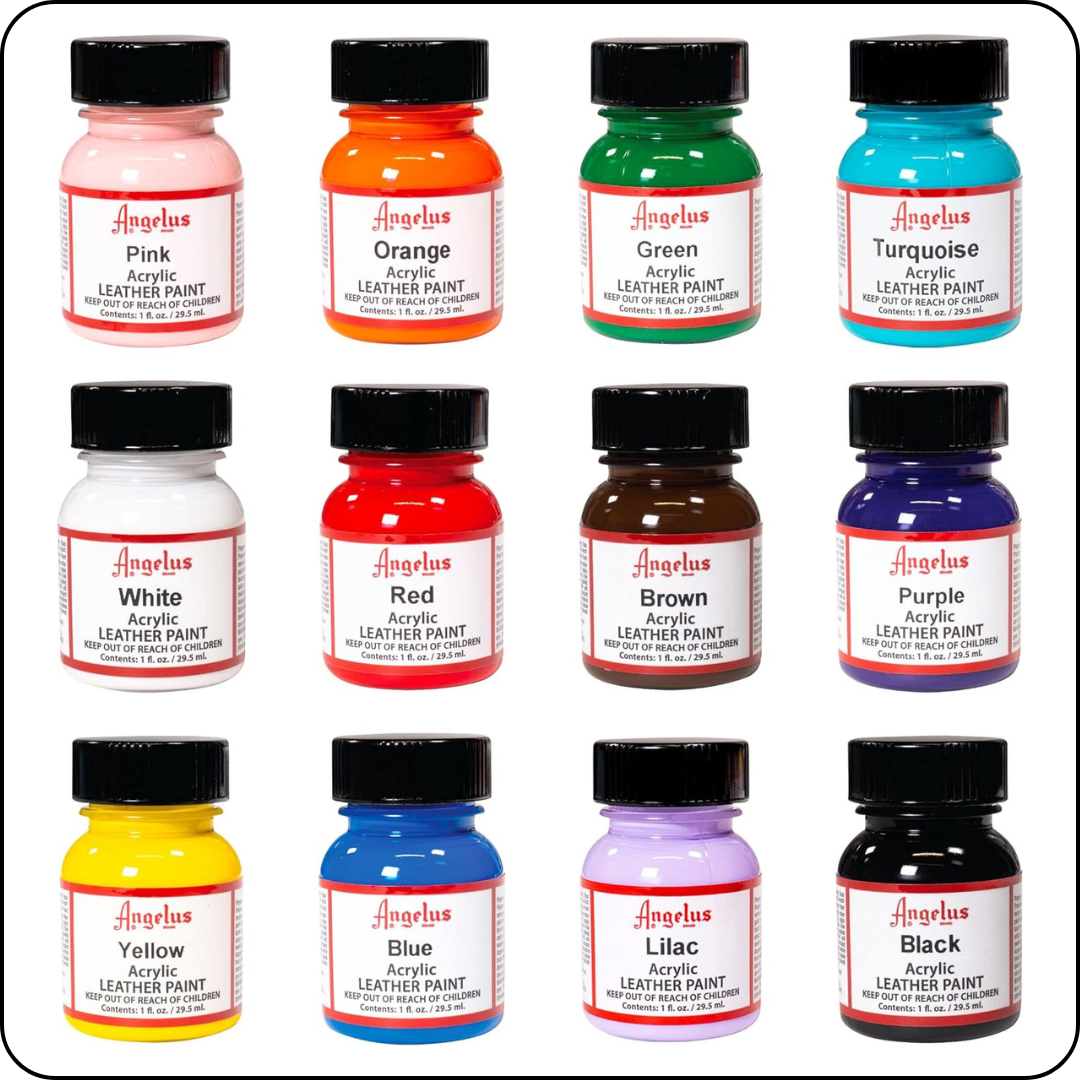 Angelus Acrylic Leather Paint, Best Sellers Kit, Flexible Paint For Shoes, Sneakers, Leather, Canvas, Furniture, and More – 12 Colors (1 oz Each)