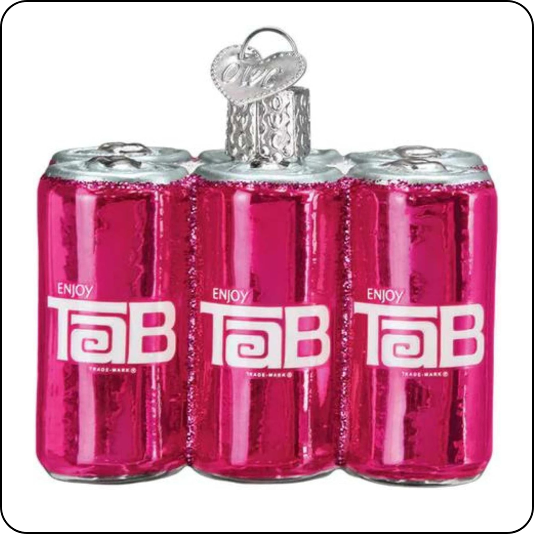 Old World Christmas Tab Six Pack Glass Blown Ornament for Christmas Tree, Handcrafted Holiday Decoration, Soda Collection