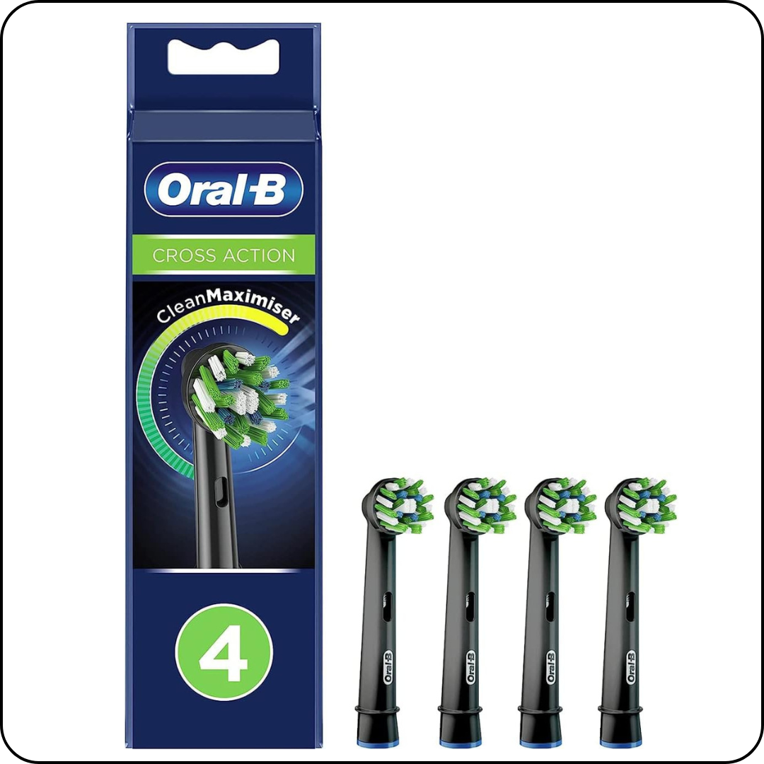 Oral-B Crossaction Electric Toothbrush Replacement Brush Head Refills, Black , 4 Count (Pack of 1)