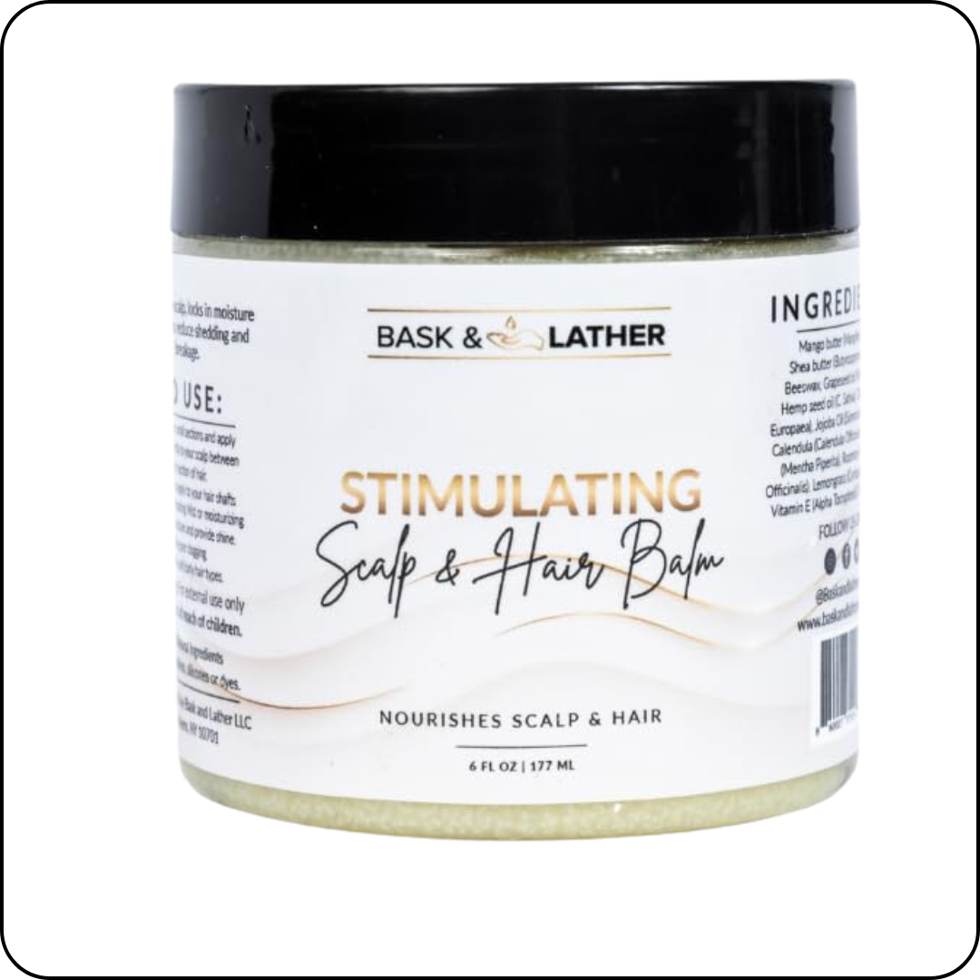 Bask & Lather Stimulating Scalp and Hair Balm for Hair Growth, Mango & Shea Butter, Nourishing Jojoba Oil, Peppermint & Rosemary Oil, Vitamin E, Scalp Care, Hair Care, Moisture, Shine & Strength, 6 oz